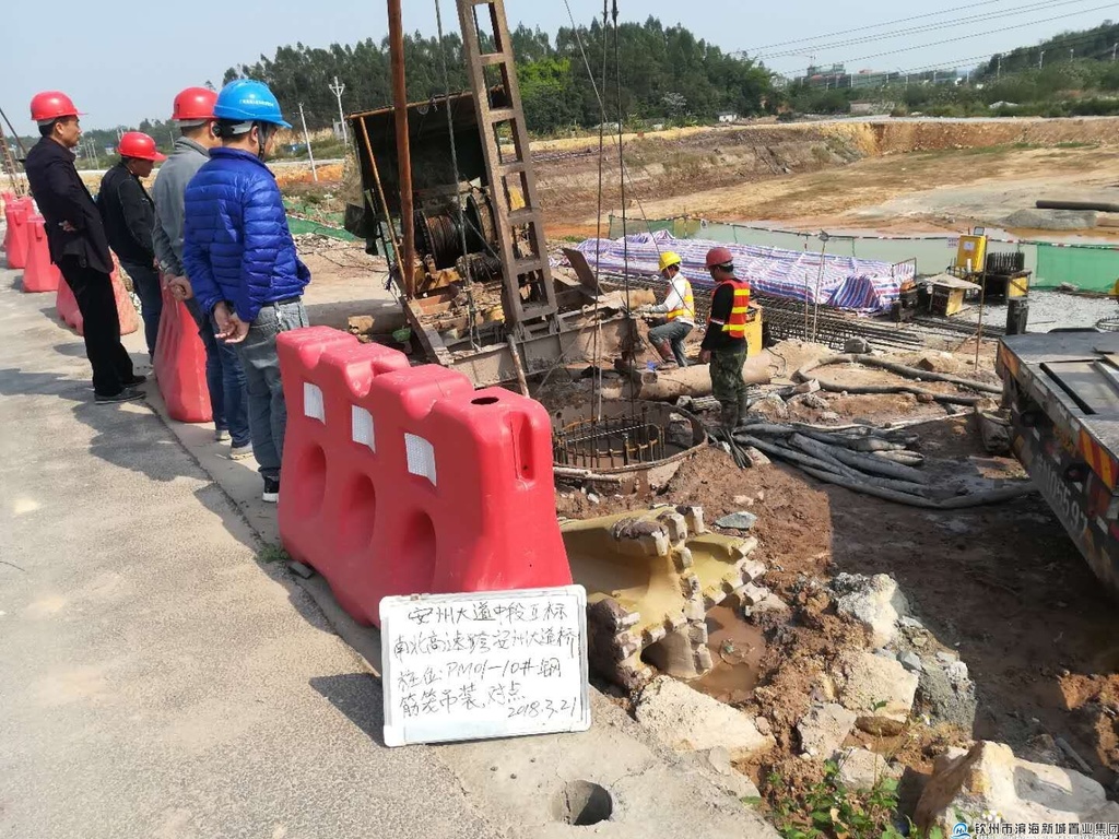 2.項(xiàng)目Ⅱ標(biāo)段(沙埠大街至站前路)下穿高速公路節(jié)點(diǎn)工程因涉及南北高速公路的改建,已分別向廣西北部灣投資集團(tuán)有限公司沿海高速公路分公司、廣西壯族自治區(qū)高速公路管理局征求過該段工程方案設(shè)計(jì)的意見?,F(xiàn)該路段的高架橋方案已經(jīng)完成變更,準(zhǔn)備進(jìn)場施工。目前k8+278-K8+540(即沙埠大街至高速公路)路段,目前已經(jīng)完成清淤、片石的回填和路基土方回填;橋梁預(yù)制場已經(jīng)進(jìn)行場地的硬化、地臺(tái)硬化,橋梁預(yù)制已完成100%。k8+610-k8+720(即高速路至站前路段)全幅于2017年10月11日進(jìn)行清表。已經(jīng)對(duì)k8+610-k8+876進(jìn)行清淤換填,目前已經(jīng)完成清淤換填。