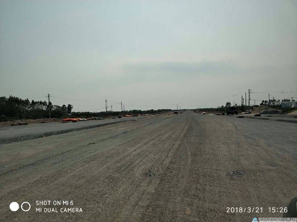 該項目于2017年2月22日進(jìn)場施工,道路約1060m,路寬60m。主要建設(shè)內(nèi)容:道路工程、交通工程、排水工程、照明工程和綠化工程等。合同價59958018.42元,工期200日歷天,行車道及非機動車車道級配碎石鋪設(shè)約90%,k2+200及k1+900處過路管全包施工。雨、污水管網(wǎng)基本建成,行車道及非機動車車道級配碎石鋪設(shè)約90%。施工單位中余建設(shè)集團(tuán)有限公司,監(jiān)理單位廣西益建工程建設(shè)監(jiān)理有限責(zé)任公司。