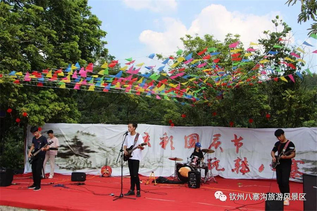 國慶期間景區(qū)舉辦以“炫彩國慶節(jié),玩轉(zhuǎn)八寨溝”為主題的系列活動受到眾多游客親睞。游客們白天可以觀看精彩歌舞文藝演出,玩真人CS運動,品嘗各種各樣的特產(chǎn)美食,學(xué)制作欽州坭興陶,體驗欽州第一漂—八寨溝森林漂流,登山徒步暢游山水,呼吸新鮮空氣,天然水潭戲水其樂無窮,整個景區(qū)一片游客如織、喜樂融融的景象。