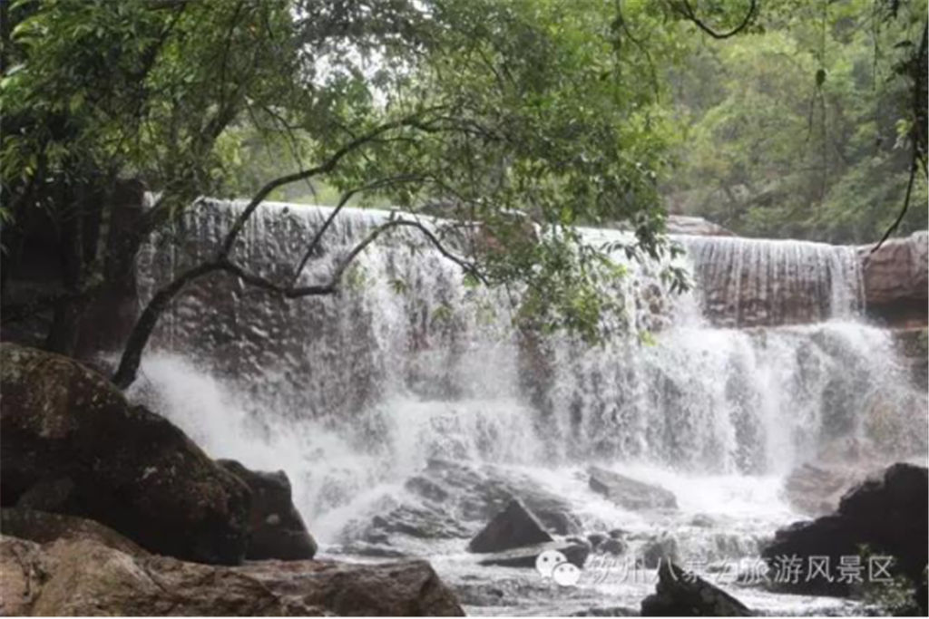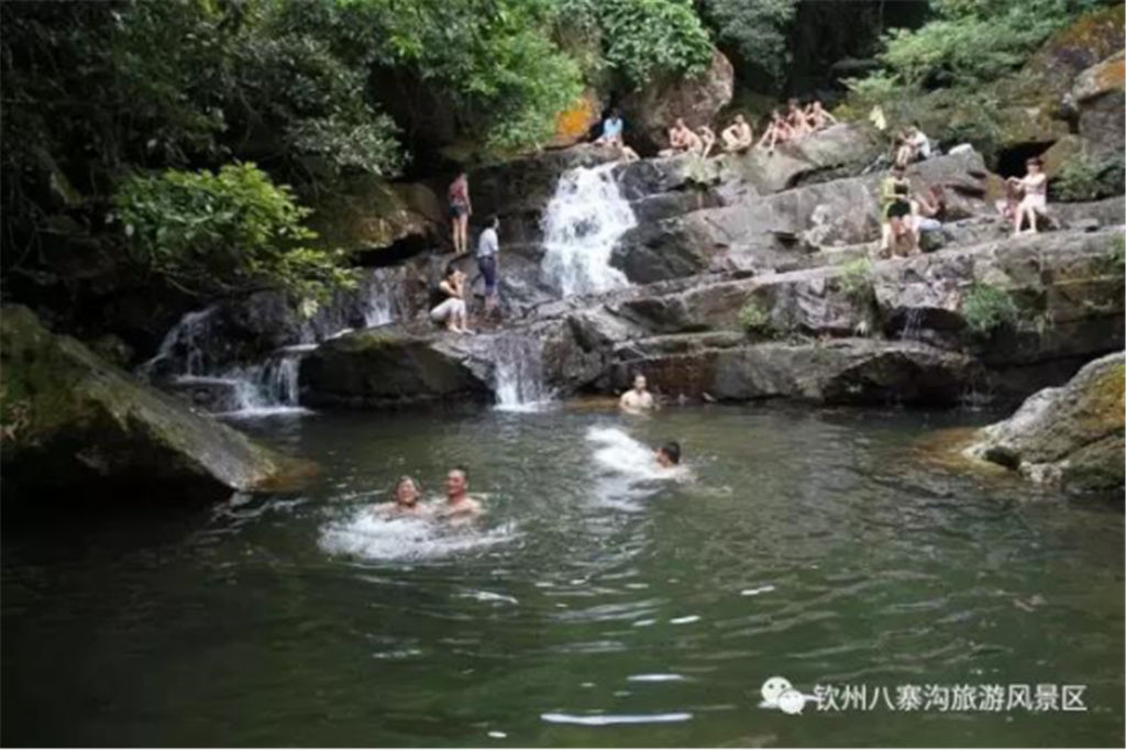 欽州的八寨溝與四川的九寨溝一樣,都具有豐饒的水源,異常清澈,天然原生態(tài),均為未遭到現(xiàn)代文明入侵和污染的圣潔凈土。也許是八寨溝的水都發(fā)自十萬大山的深處吧,匯聚著眾多的山泉沿著溝壑奔騰而下,一路隨心翻浪,一路高亢歡歌,從而在長年的沖擊中形成了大大小小的泉潭,并且順著山勢(shì)形成了不少或大或小的瀑布。