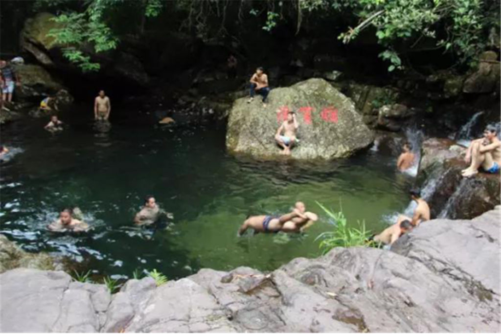 每個(gè)石潭不僅都有著美麗的名字,比如阿蘭灘、日月潭、將軍潭等等,而且每個(gè)石潭都仿佛是一個(gè)天然浴池,大的深達(dá)三、四米,可容上百人同時(shí)戲水;小的如浴盆,只容一兩人入浴。尤其是“仙女池”,更是一個(gè)盤踞其中的天然浴池,清清的水面上常?;\罩著一層淡淡的水霧,平添幾分神秘。