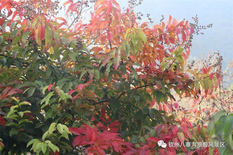 除了梅花,八寨溝梅園里的楓樹(shù)葉也開(kāi)得正旺,非常漂亮,楓葉嬌紅似火,遠(yuǎn)眺火紅的楓葉像一團(tuán)團(tuán)火在燃燒,那些從樹(shù)上飄落下來(lái)的葉子,像一只只紅色的蝴蝶在空中自由的飛舞。