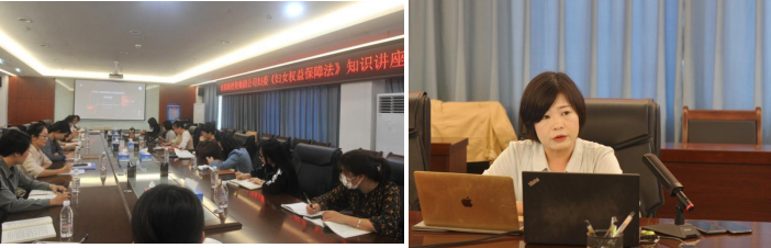 (圖為律師在為女職工上《婦女權(quán)益保障法》知識講座)