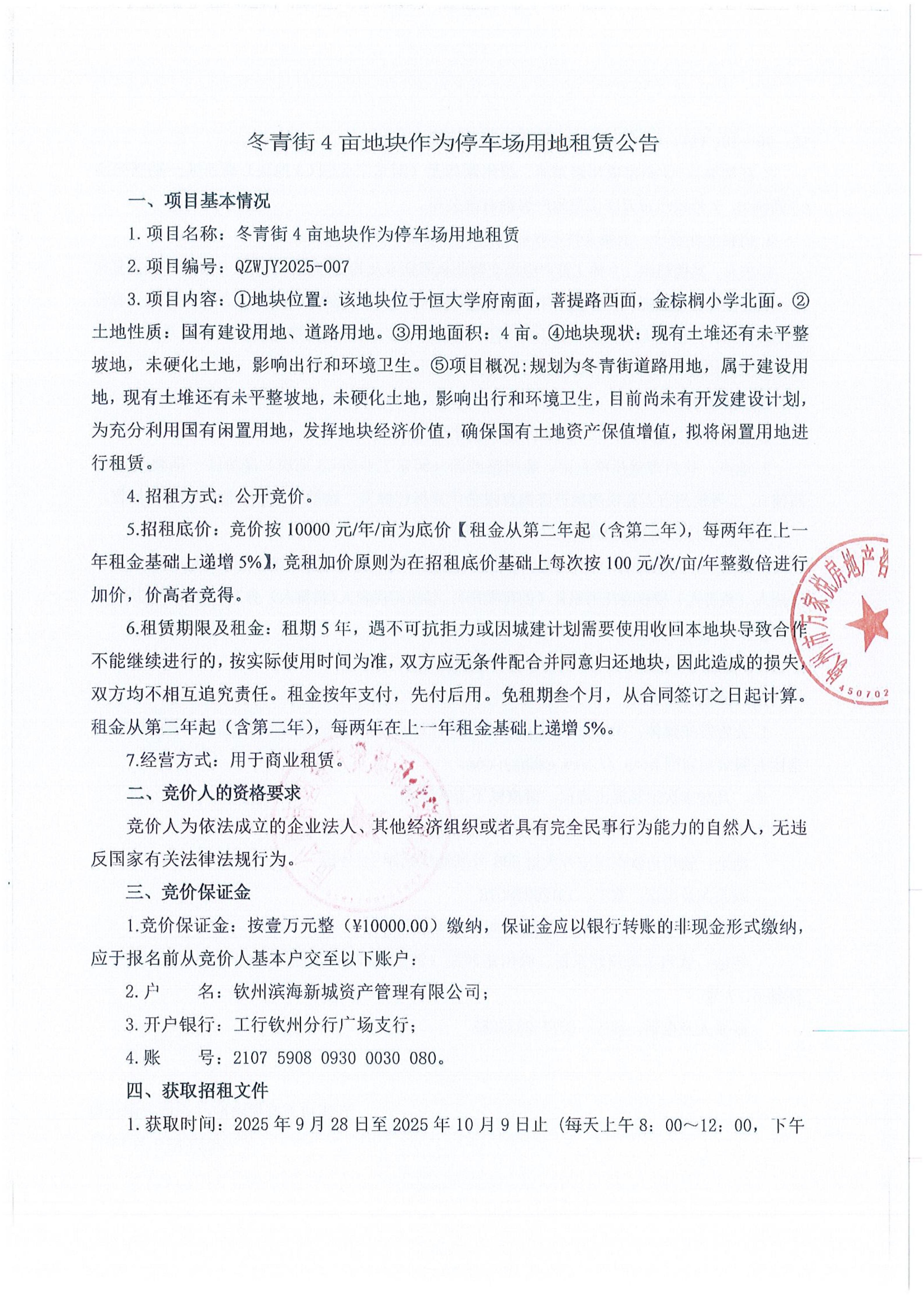欽州市欽南區(qū)揚帆大道與龍海路交匯處西北角地塊公開招租項目