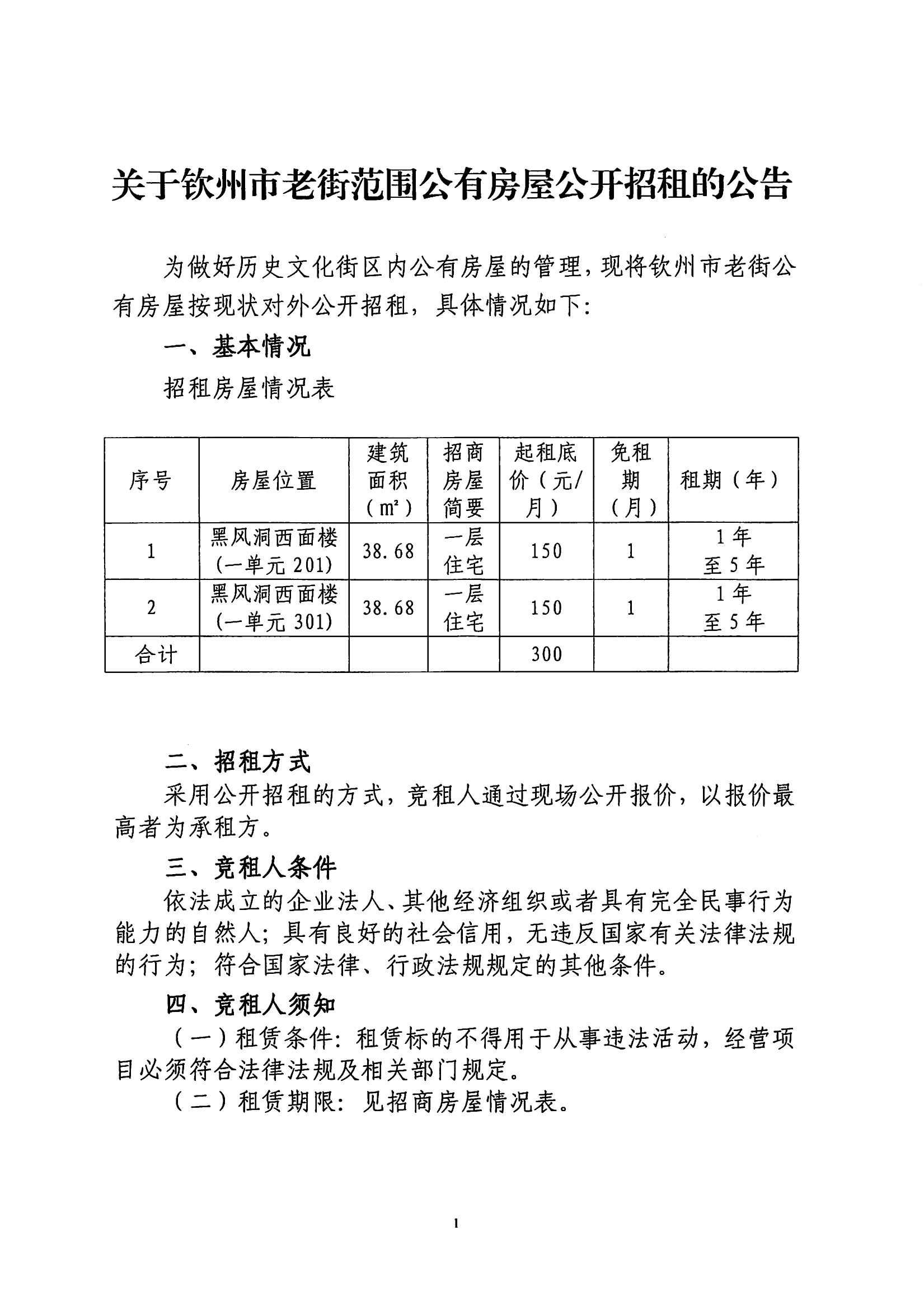 欽州市濱海文化旅游投資有限公司關(guān)于欽州市老街范圍2處房屋公開招租結(jié)果公示