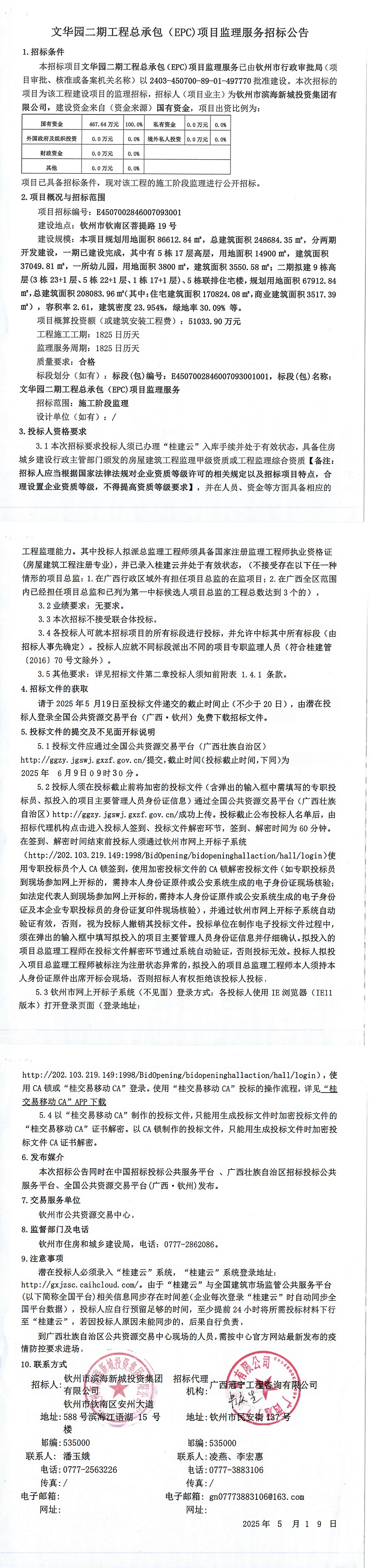 文華園二期工程總承包(EPC)項目監(jiān)理服務(wù)招標公告