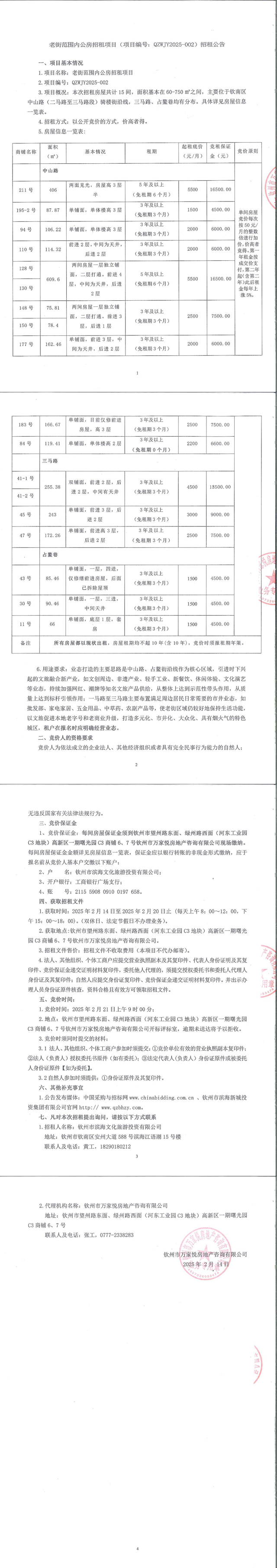 老街范圍內公房招租項目(項目編號:QZWJY2025-002)招租公告