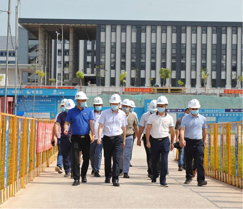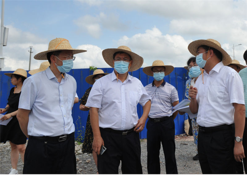莫錦榮(左二)在項目工地現(xiàn)場聽取工作匯報 5月27日,市委常委、組織部部長......
