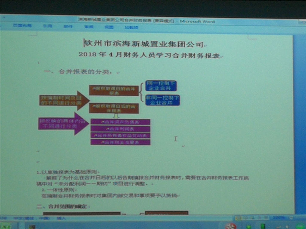 為了提高財(cái)務(wù)人員財(cái)務(wù)報(bào)表編報(bào)質(zhì)量和工作效率,2018年4月15日上午,計(jì)劃財(cái)務(wù)部李東波經(jīng)理主持召開(kāi)學(xué)習(xí)會(huì),學(xué)習(xí)編制合并報(bào)表的相關(guān)業(yè)務(wù)知識(shí),集團(tuán)及各子公司全體財(cái)務(wù)人員參會(huì)學(xué)習(xí)。會(huì)上洪家泰副經(jīng)理講解了合并會(huì)計(jì)報(bào)表及附注的編制方法及要求,規(guī)范和統(tǒng)一報(bào)表和附注的格式,并針對(duì)同一控制下企業(yè)合并及非同一控制下企業(yè)合并的少數(shù)股東權(quán)益、歸屬于母公司所有者權(quán)益進(jìn)行了詳細(xì)講解。