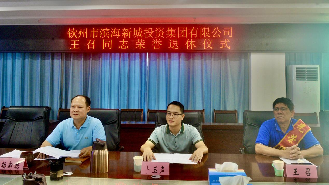 9月15日,市濱海投資集團(tuán)公司舉行王召同志榮譽(yù)退休儀式,歡送王召同志,表達(dá)對他的關(guān)心關(guān)愛之情,也激勵年輕干部砥礪初心、奮發(fā)前進(jìn),為開創(chuàng)集團(tuán)公司轉(zhuǎn)型升級新局面不懈奮斗。集團(tuán)公司黨委副書記、紀(jì)委書記卜玉聲參加儀式,集團(tuán)公司副總經(jīng)理、工會主席楊新棟同志主持儀式。