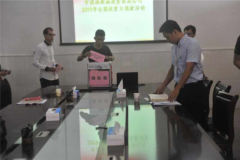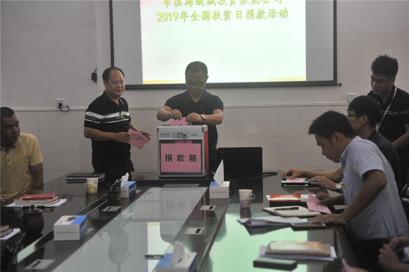 2019年10月16日上午,在國家第6個“扶貧日”暨第27個國際“消除貧困日”來臨之際,市濱海集團公司積極組織開展2019年“10.17全國扶貧日”捐款活動,助力脫貧攻堅。
