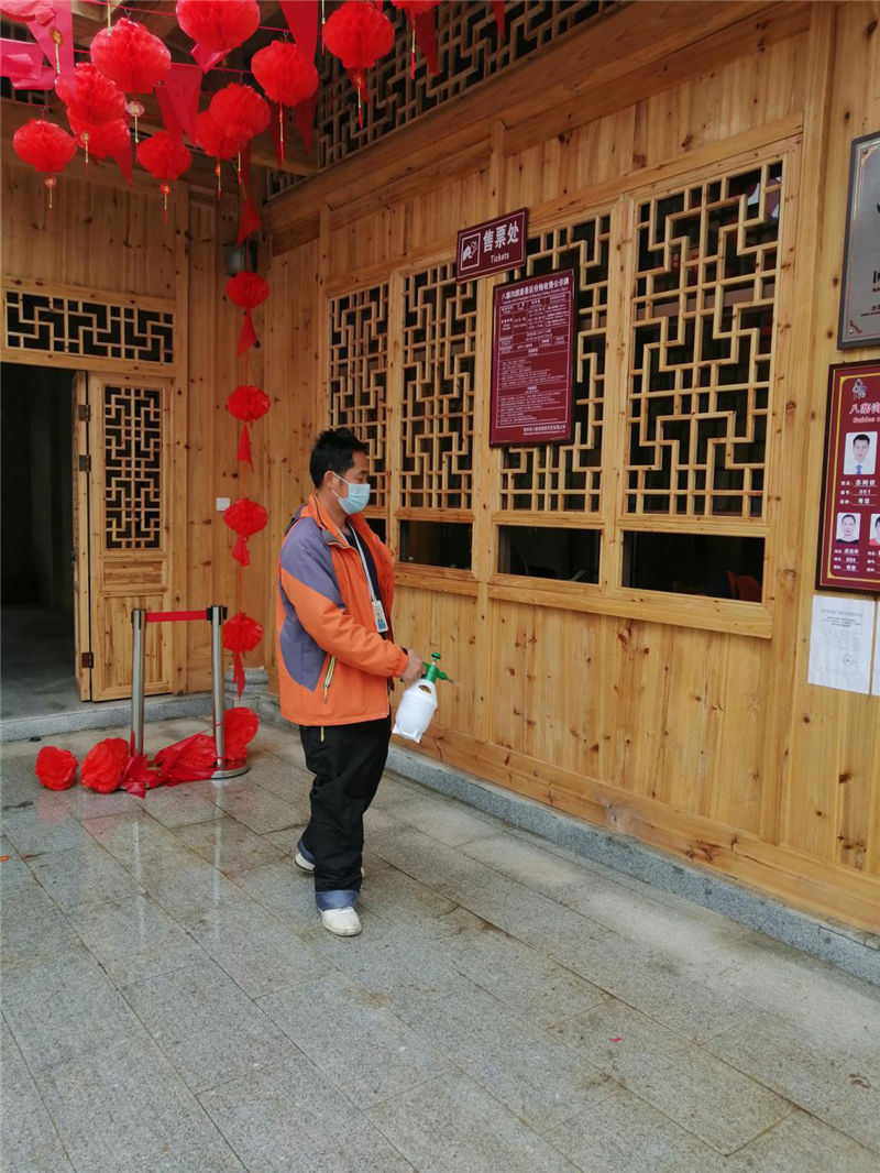 四、值班人員每天對(duì)八寨溝景區(qū)售票處,值班室,收費(fèi)亭等場(chǎng)所進(jìn)行消毒清潔,并做好消毒記錄;