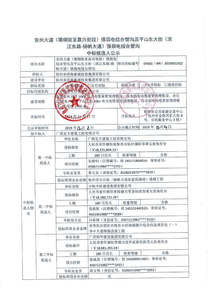 欽州市濱海新城嘉興街(嘉禾街-揚帆大道)道路工程及嘉興街(揚帆大道-安州大道)地下綜合管廊項目中標(biāo)候選人公示