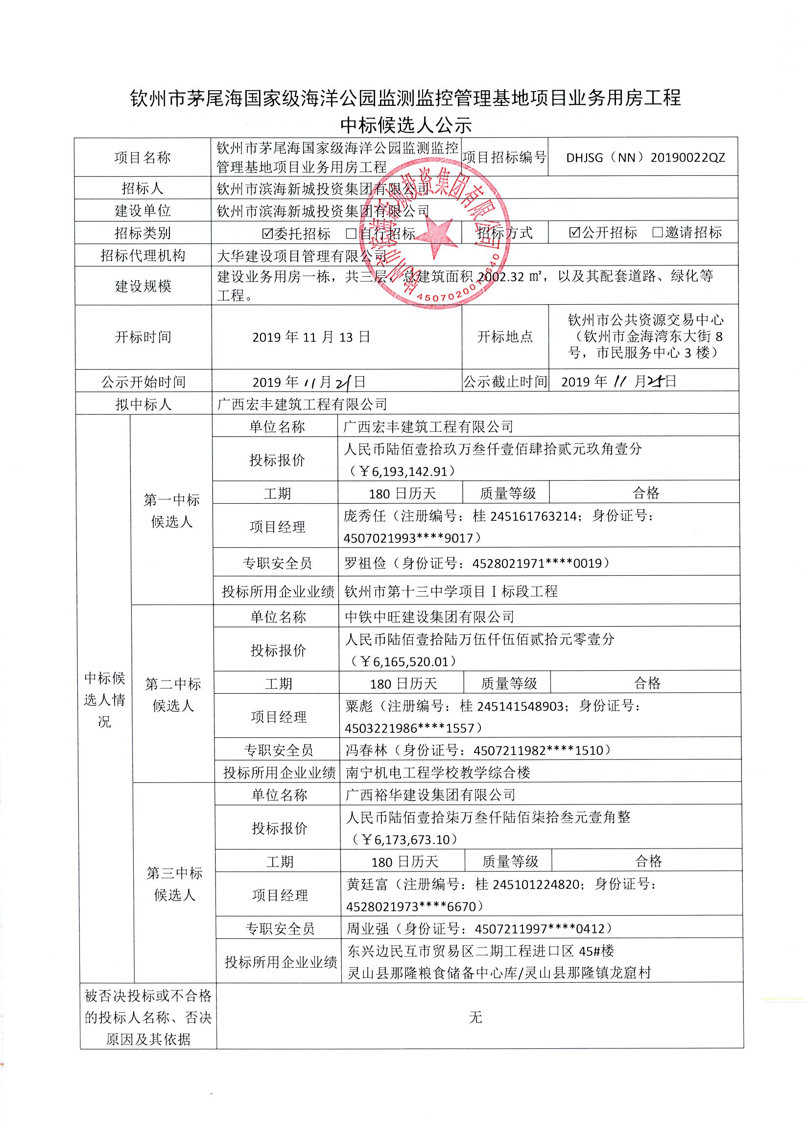 欽州市茅尾海國家級海洋公園監(jiān)測監(jiān)控管理基地項目業(yè)務(wù)用房工程中標(biāo)候選人公示