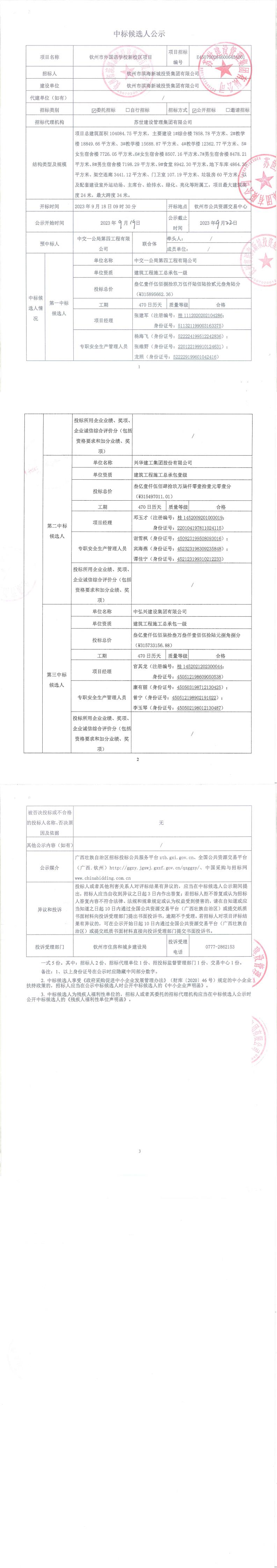 欽州智匯谷科技園項目一期工程監(jiān)測中標候選人公示