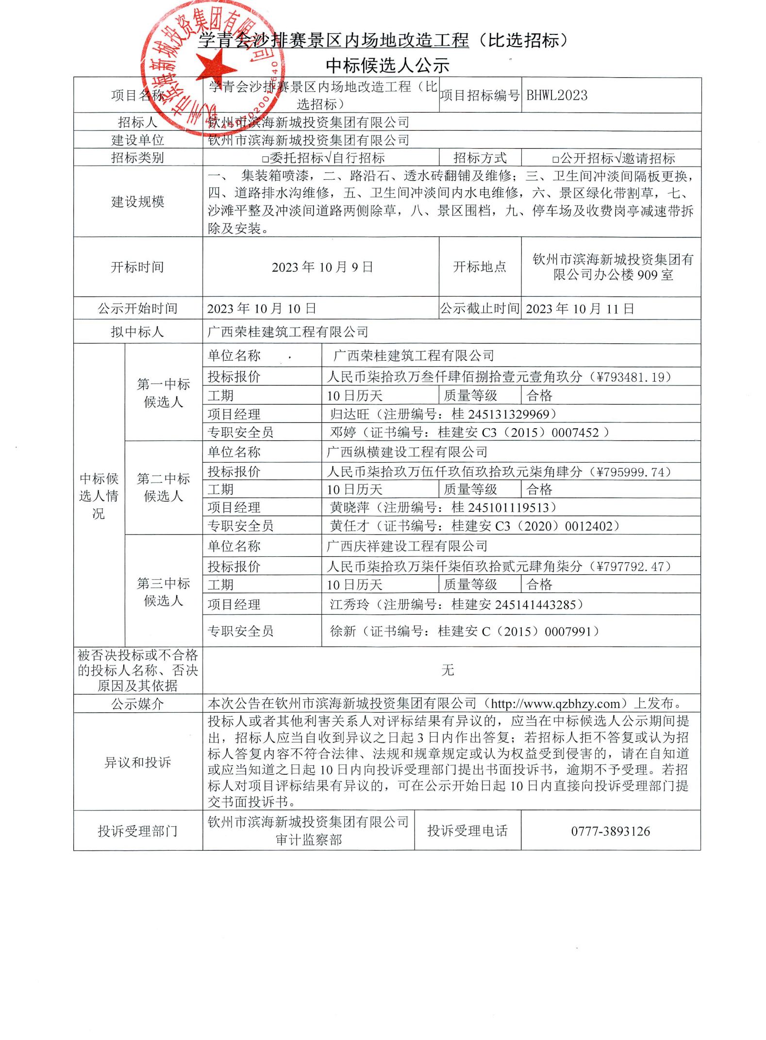 學(xué)青會沙排賽景區(qū)內(nèi)場地改造工程(比選招標)中標候選人公示