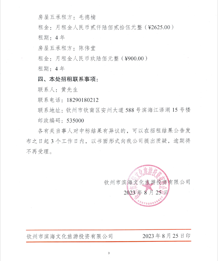 關(guān)于欽州市北部灣人才創(chuàng)業(yè)基地公寓樓整體出租項(xiàng)目成交結(jié)果公告