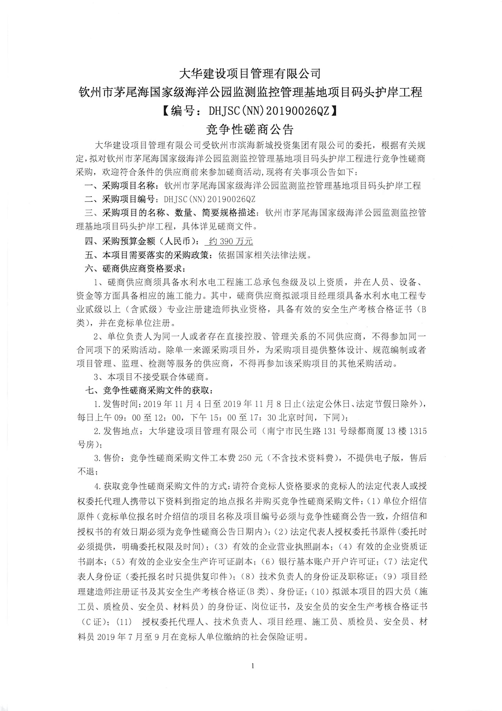競爭性磋商公告--欽州市茅尾海國家級海洋公園監(jiān)測監(jiān)控管理基地項目碼頭護岸工程