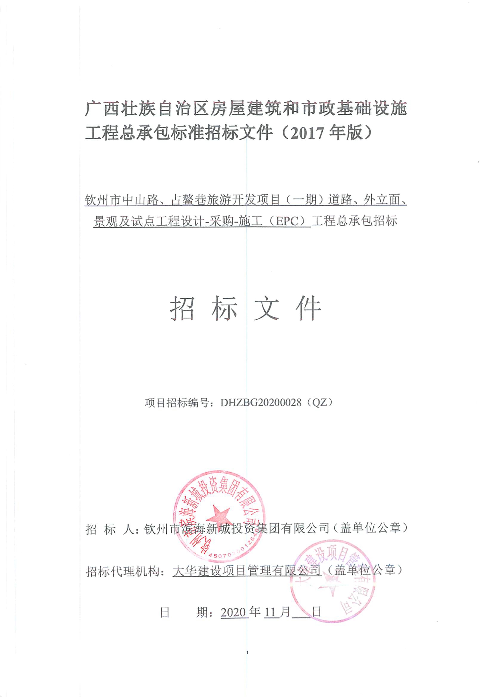 欽州市中山路、占鰲巷旅游開發(fā)項目(一期)道路、外立面、景觀及試點工程設(shè)計-采購-施工(EPC)工程總承包招標公告
