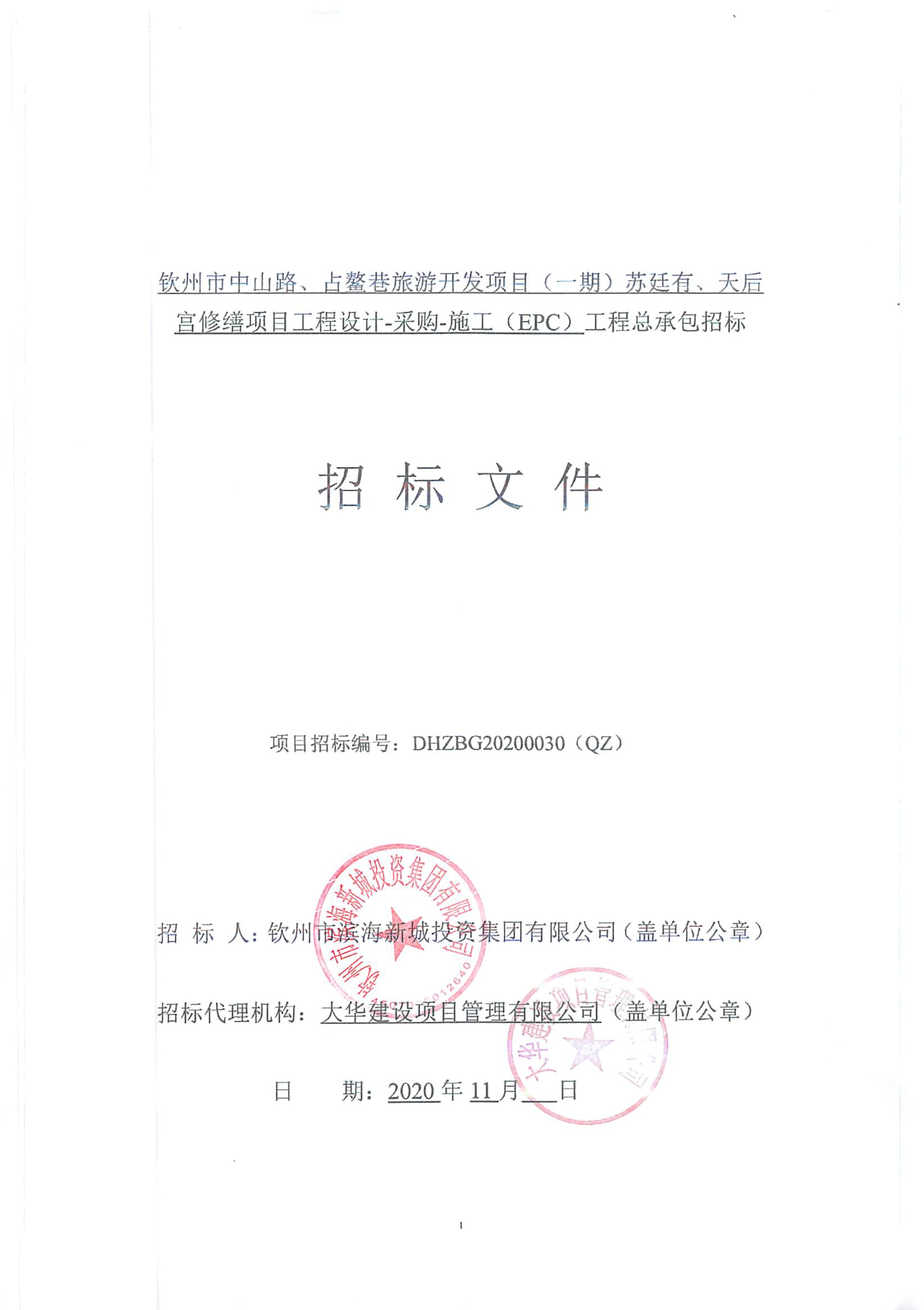 欽州市中山路、占鰲巷旅游開發(fā)項目(一期)蘇廷有、天后宮修繕項目工程設(shè)計-采購-施工(EPC)工程總承包招標公告