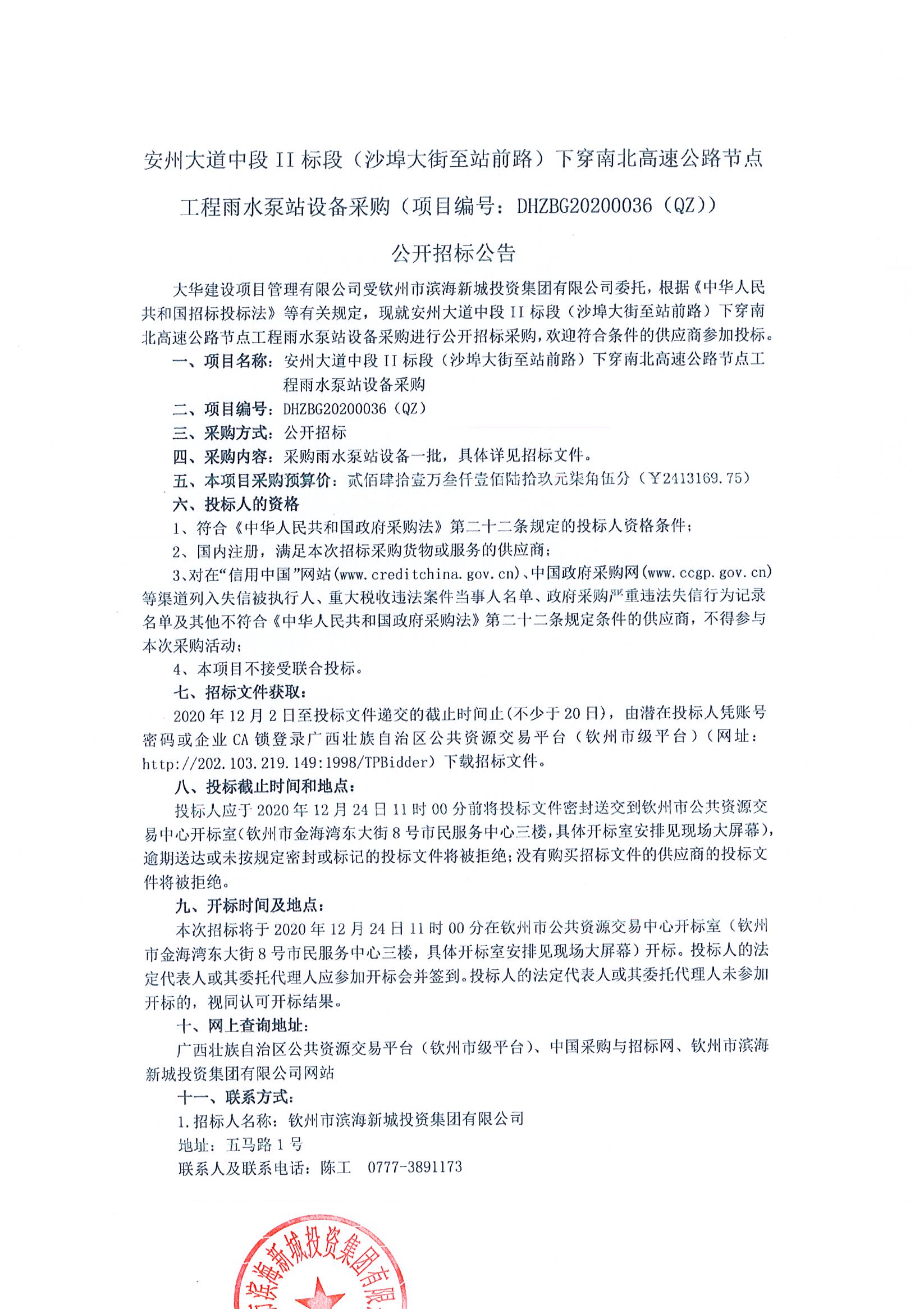 招標人:欽州市濱海新城投資集...