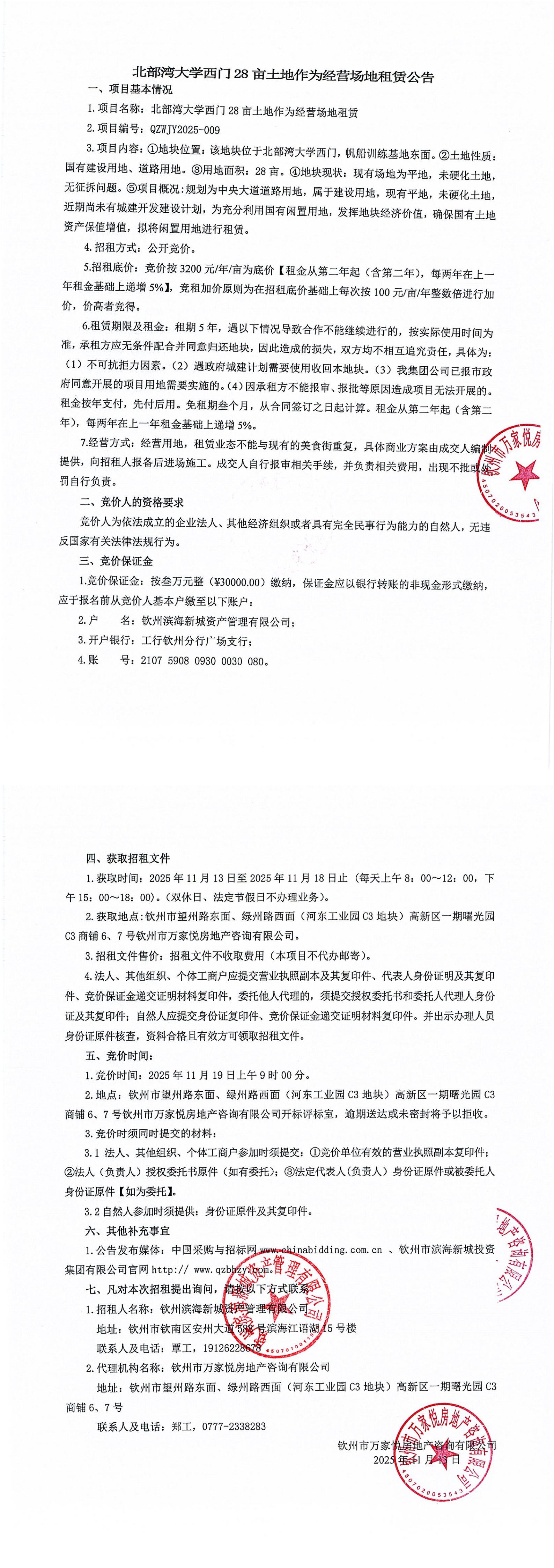 欽州市北部灣大學(xué)東北面6畝地塊公開招租項目