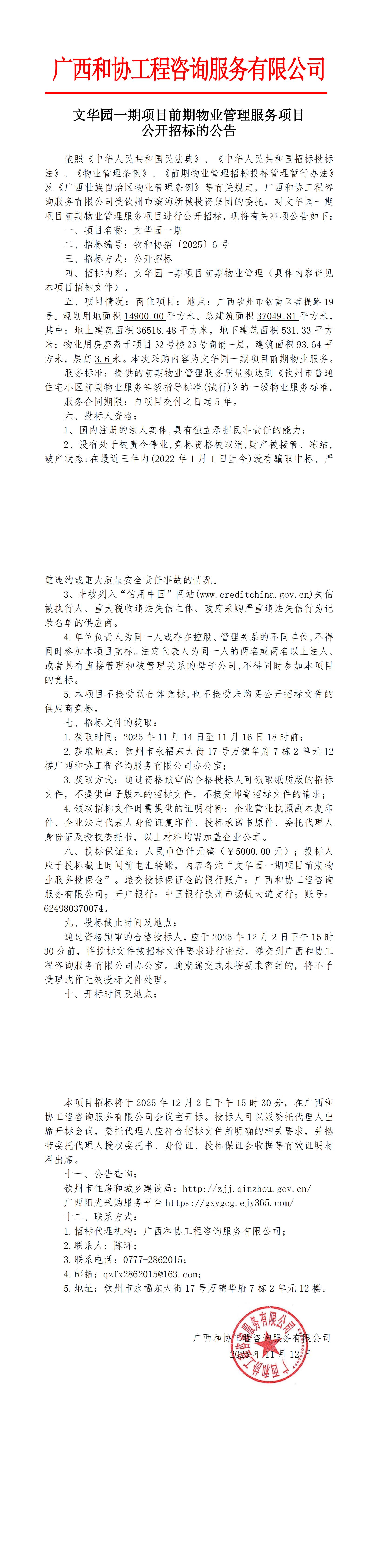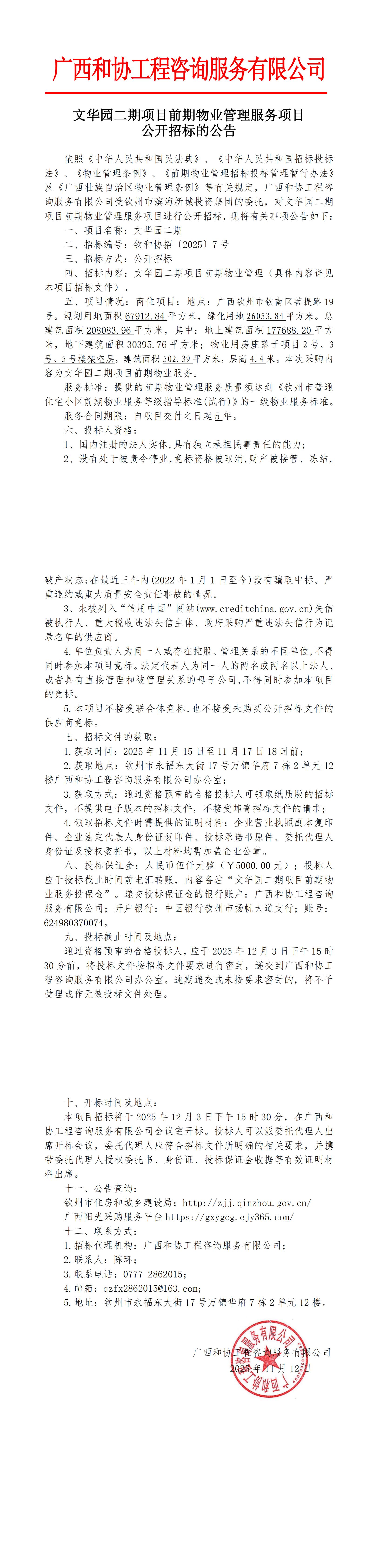 文華園二期項目前期物業(yè)管理服務(wù)項目公開招標(biāo)的公告