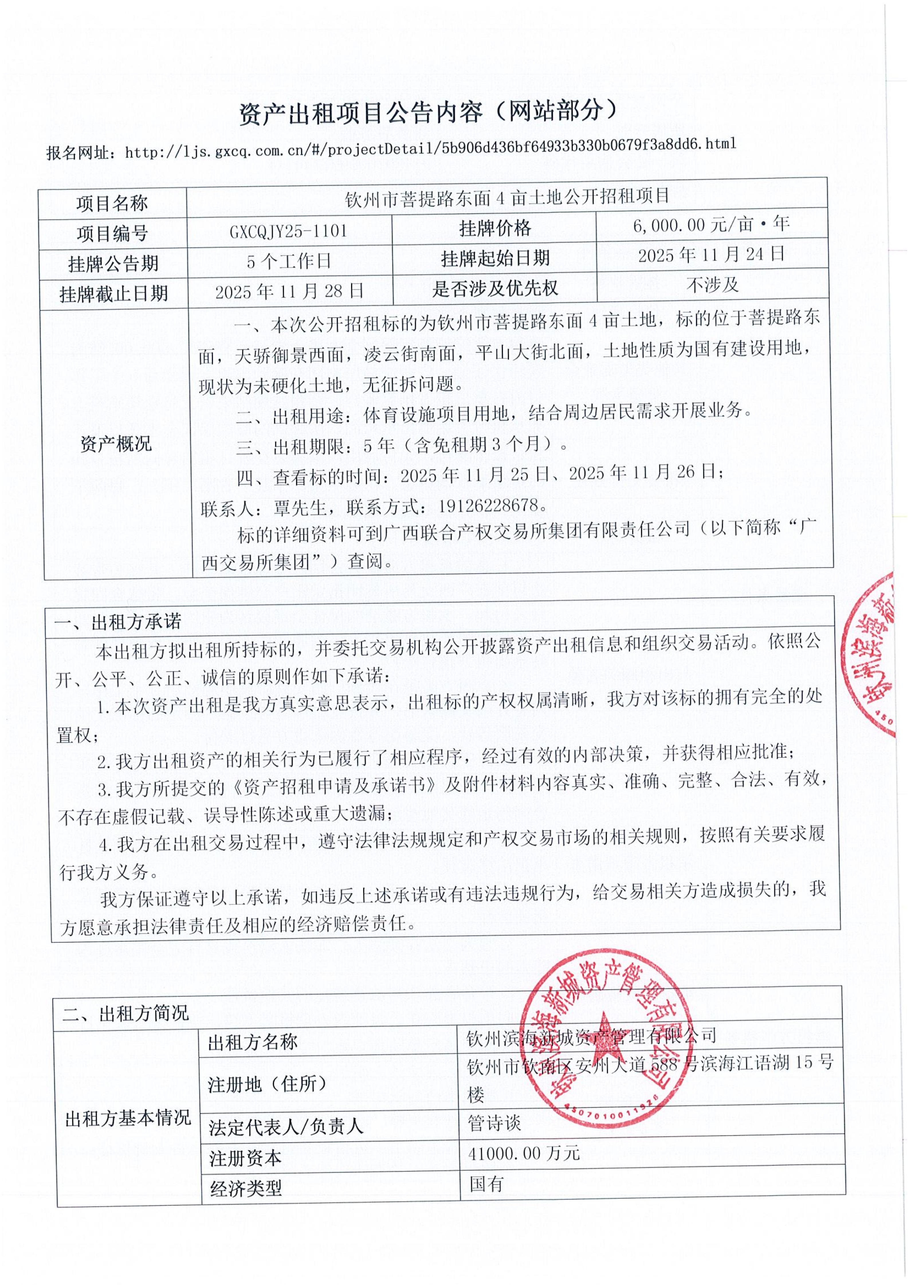 欽州市菩提路東面4畝土地公開招租項目