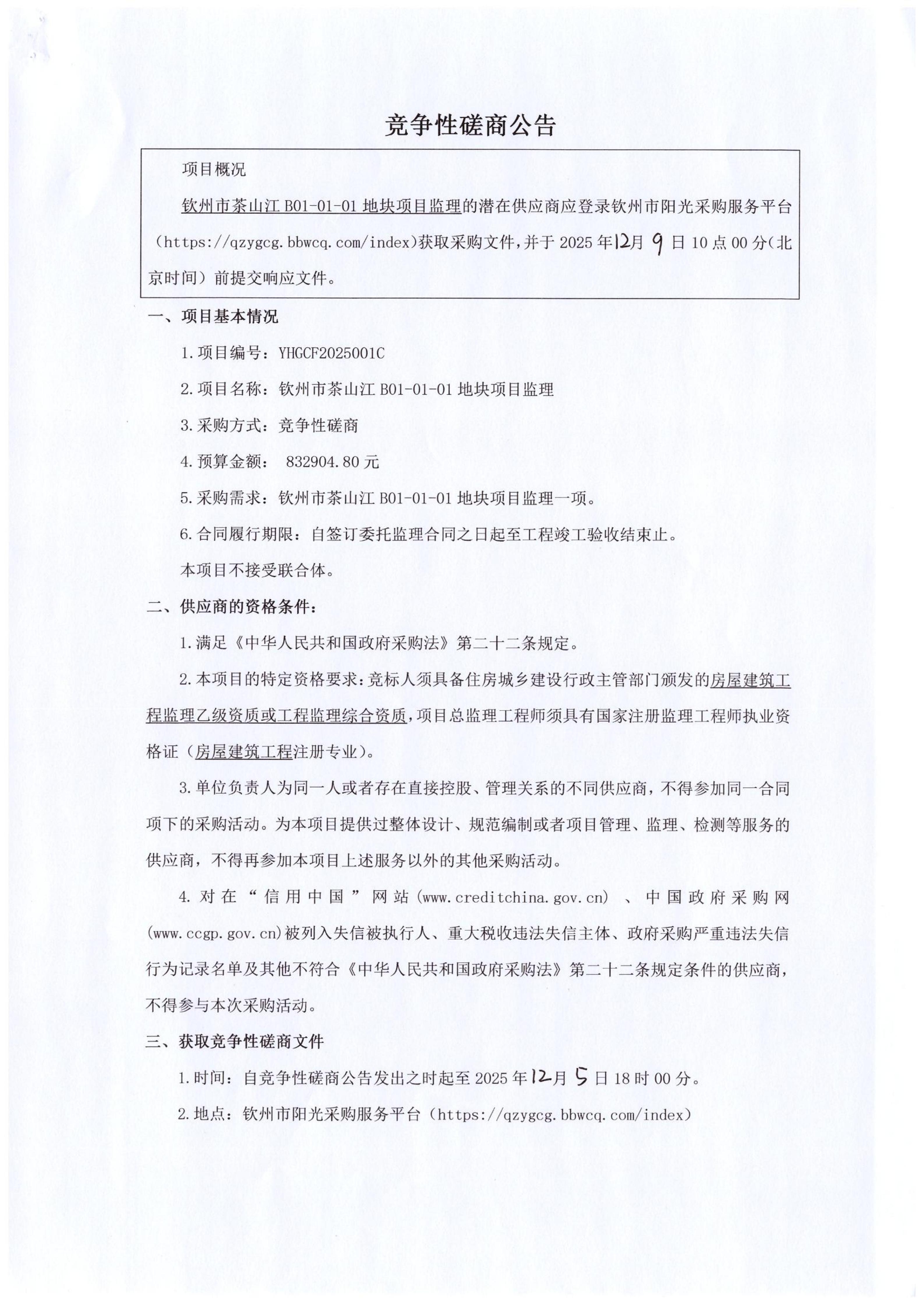 茶山江B01-01-01項目監(jiān)理競爭性磋商公告