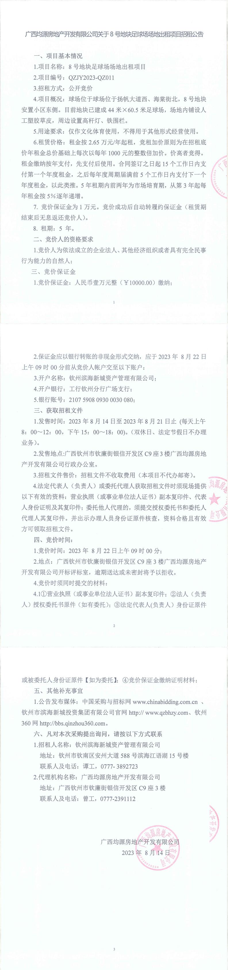 關(guān)于8號地塊足球場場地出租項目招租公告