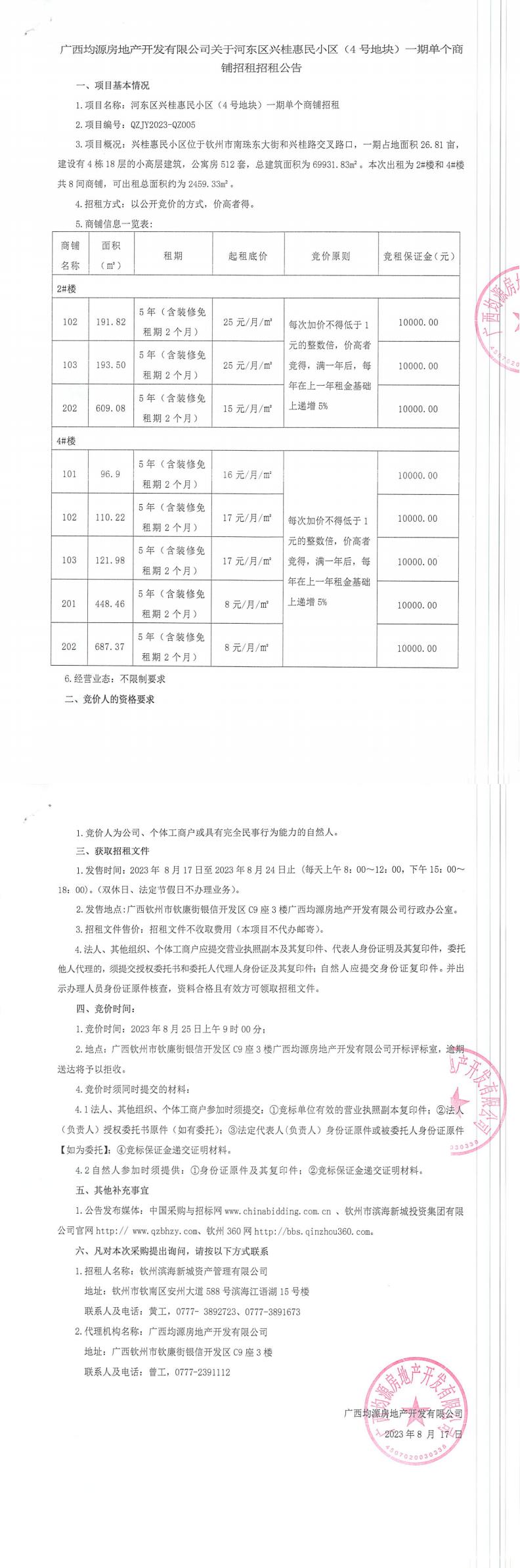 關(guān)于興桂惠民小區(qū)(4號地塊)二期商鋪招租公告