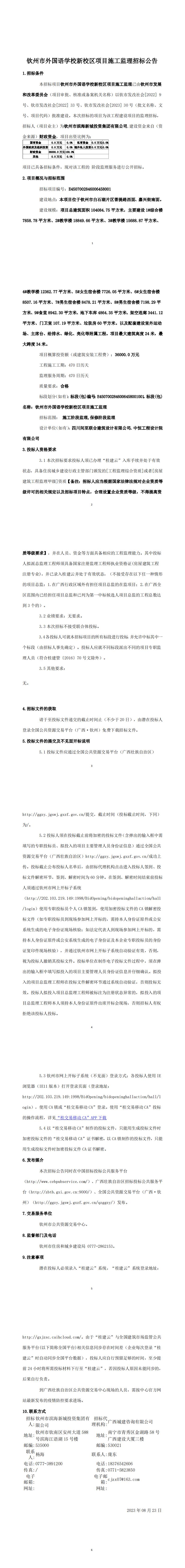 欽州市外國語學(xué)校新校區(qū)項目施工監(jiān)理招標公告