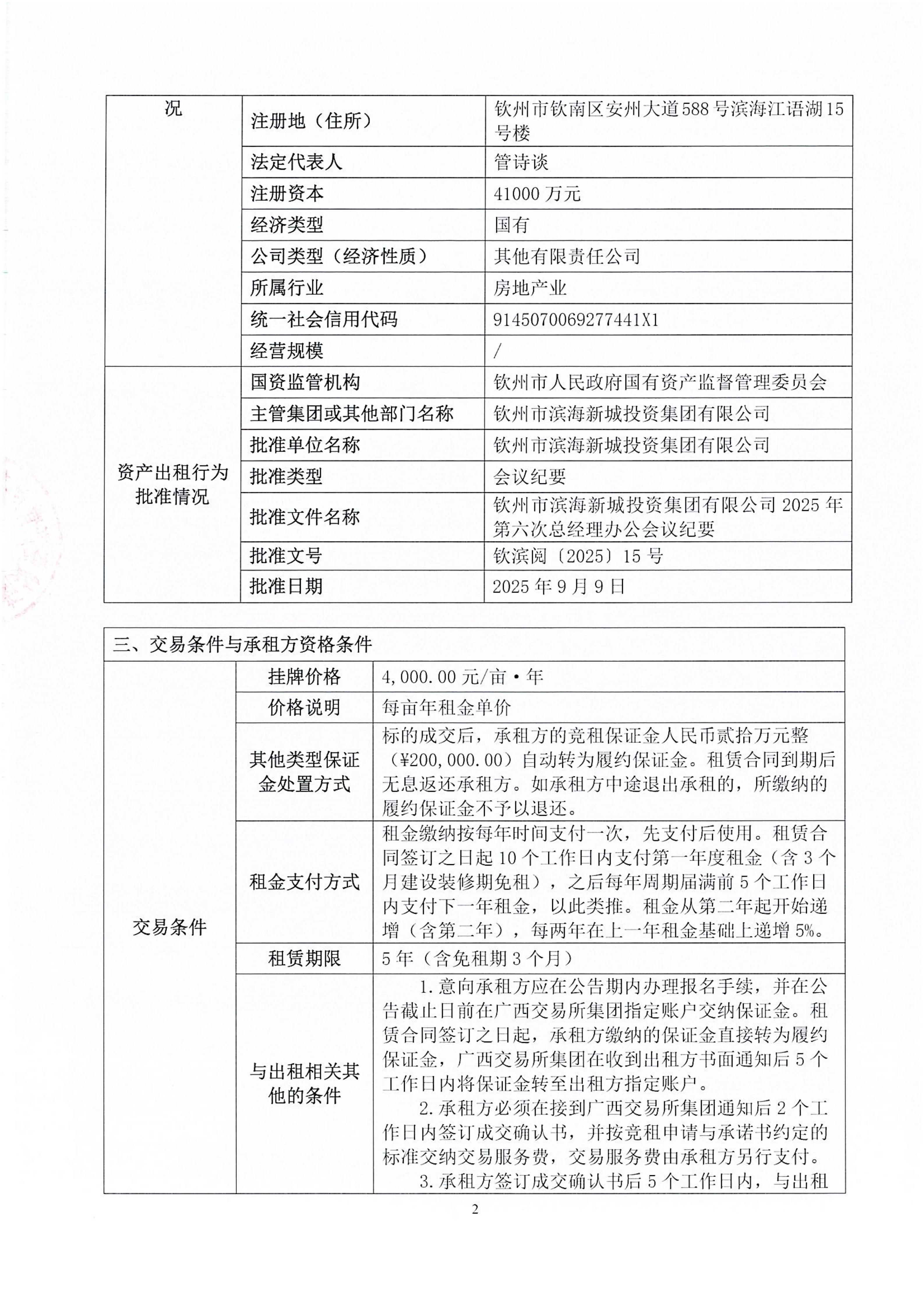 欽州市欽南區(qū)揚(yáng)帆大道與龍海路交匯處西北角地塊公開招租項(xiàng)目