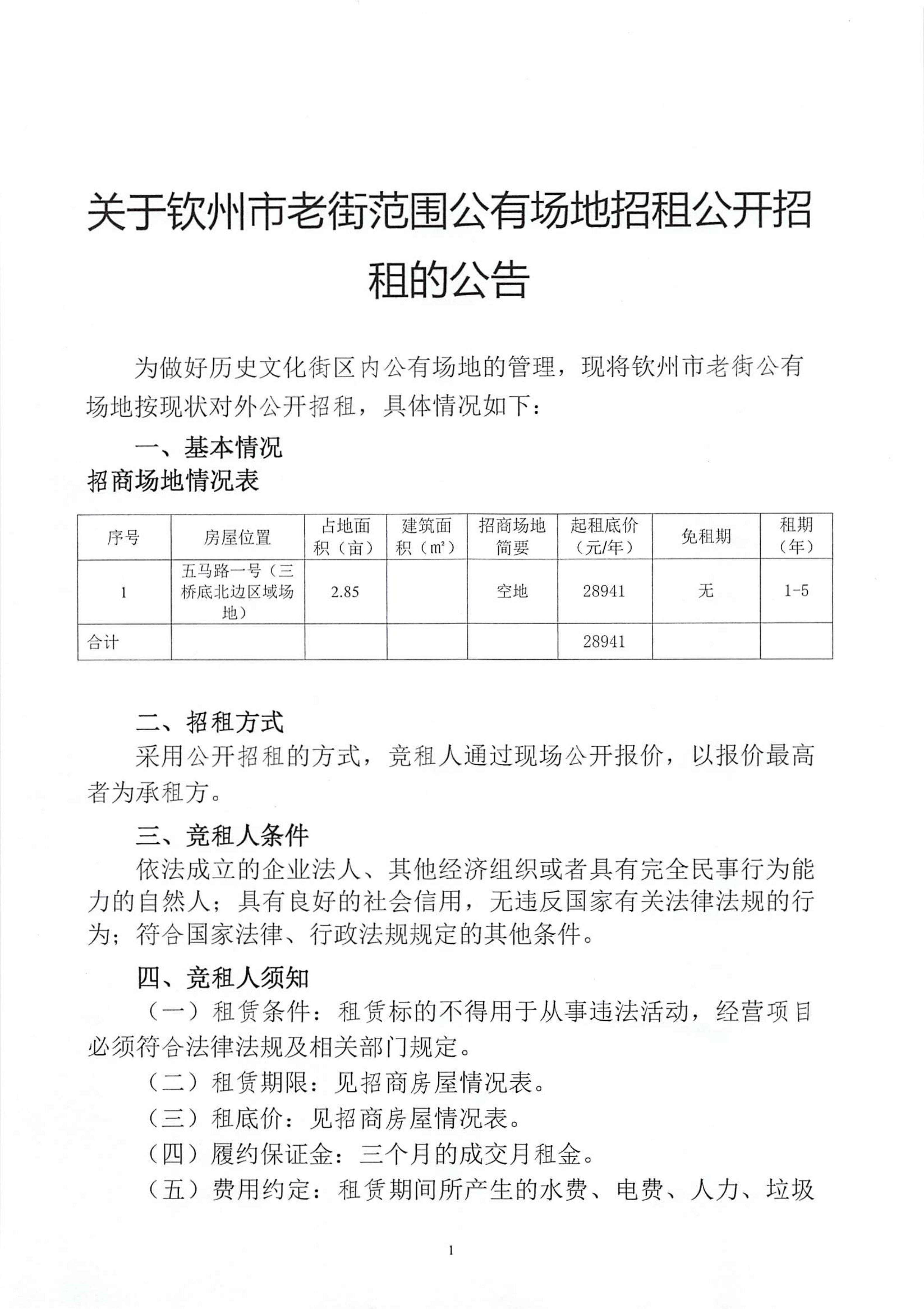 關(guān)于欽州市老街范圍公有場(chǎng)地公開(kāi)招租的公告(五馬路一號(hào)三橋底北邊區(qū)域場(chǎng)地)